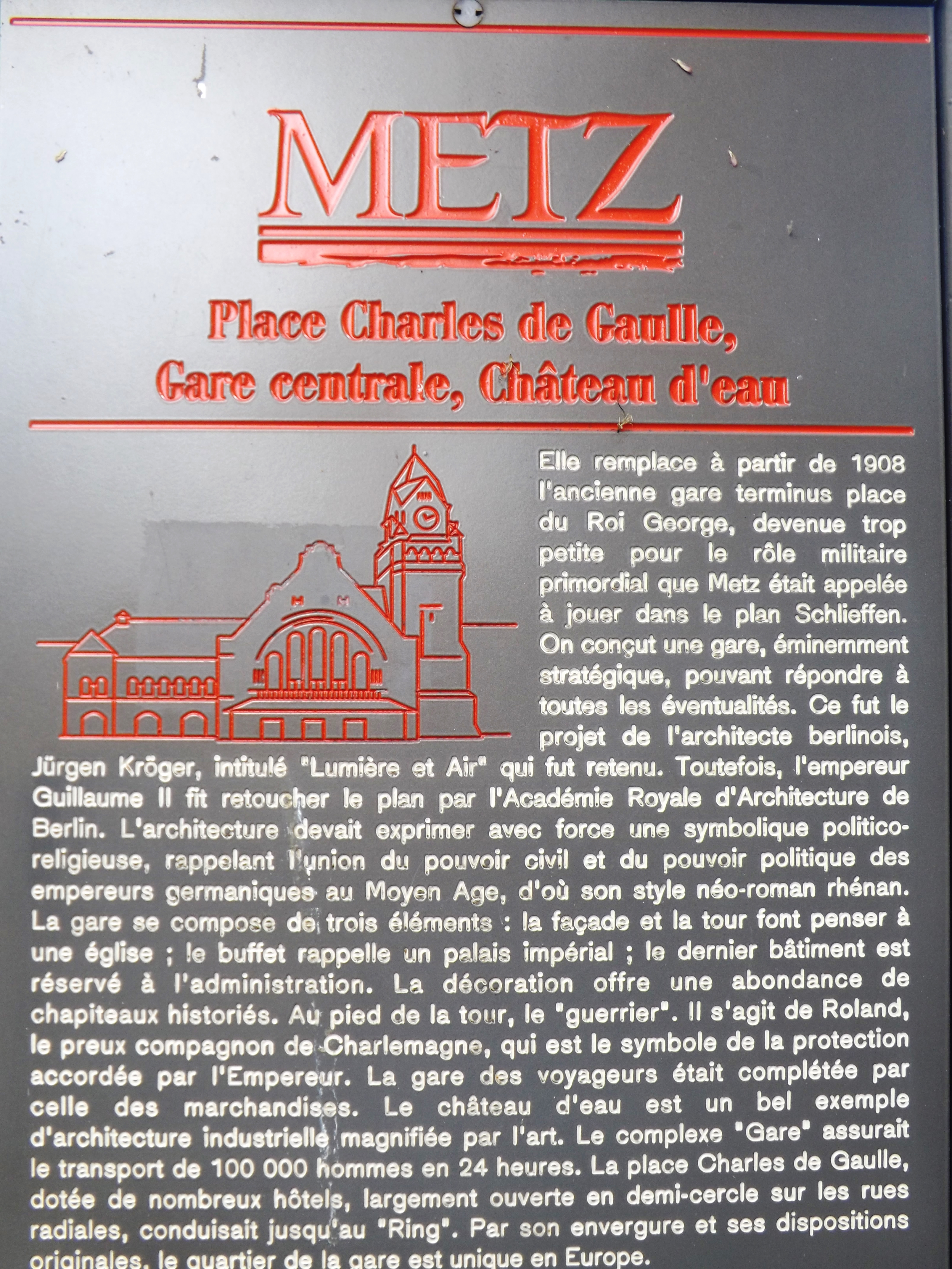 Comme le premier objectif était de voir la gare de Metz, la plus belle de France selon Frédéric, nous stationnons à proximité et marchons jusqu’à la gare.