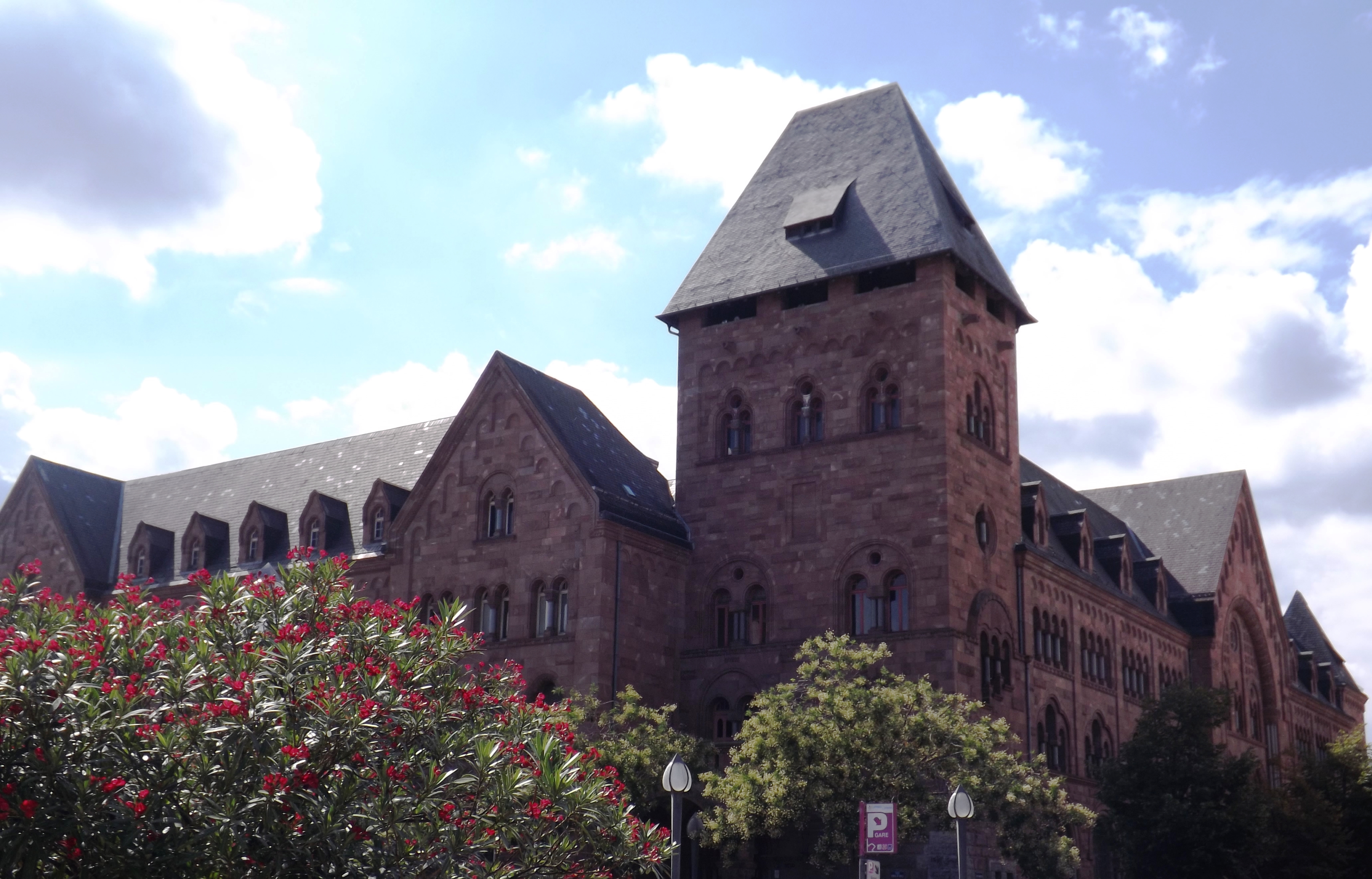 Face à la gare un autre bâtiment imposant toujours de style néoroman rhénan, l’Hôtel des Postes.