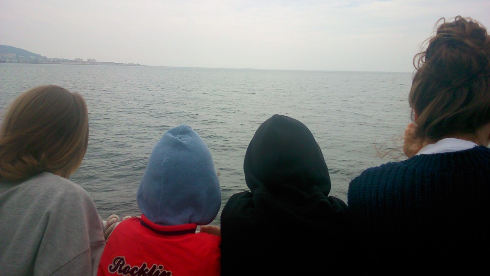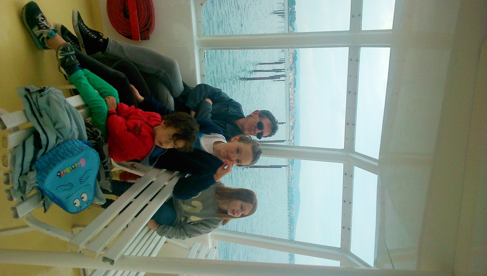 J’avais réservé par téléphone nos 6 places dans le bateau, départ à 14h30. L’inertie étant ce qu’elle est avec 4 enfants (le temps des précautions d’usage – pipi/manteaux – + le temps d’enfilage des chaussures + ci + ça… il faut compter 1/4 d’heure avant de décoller de la maison), nous sommes arrivés tout juste avant le départ. J’ai dû courir jusqu’au bateau pour ne pas qu’ils démarrent sans nous. Je déteste courir.