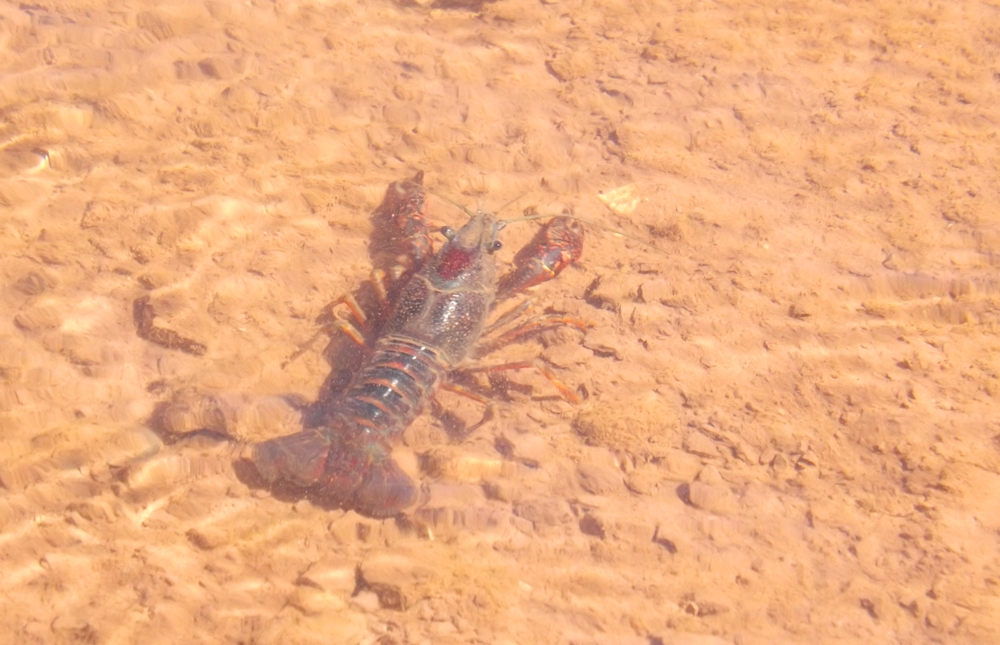 Une écrevisse, américaine je crois. Il paraît que cette espèce introduite je ne sais comment il y a quelques années est nuisible pour la faune et la flore locales.