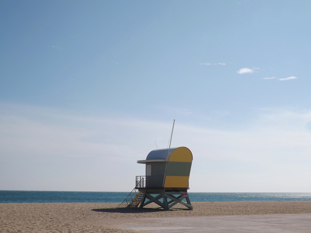 Nous arrivons à Leucate Plage, on repère deux parkings et aucun qui ne porte le nom du parking recherché. Bon, on finit par se garer sur le front de mer, attirés par une fort jolie cabine de surveillance. Le dieu des voyageurs finira bien par nous guider vers l’accès au phare.