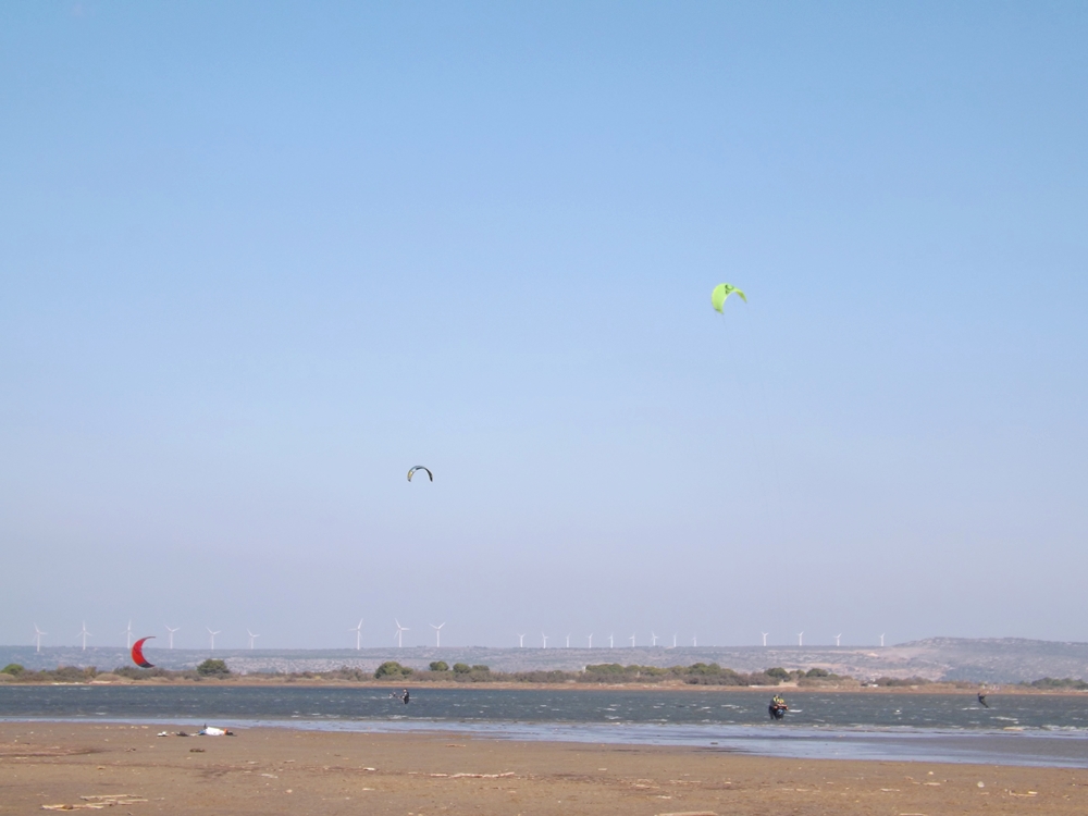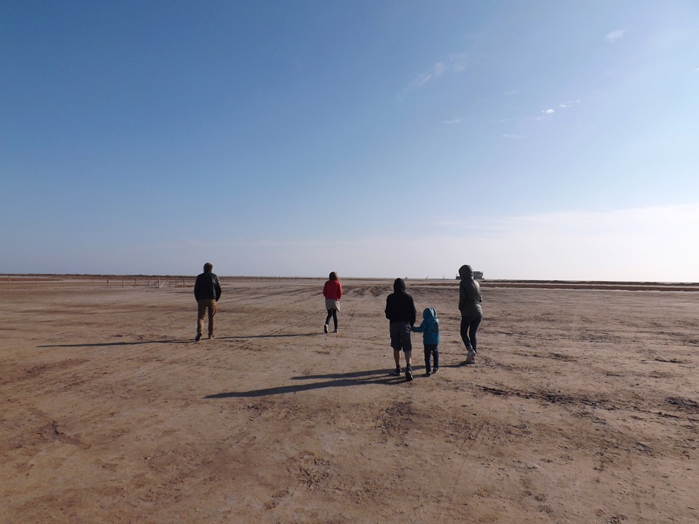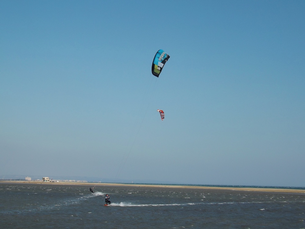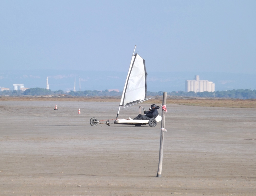 Il fait un vent de fou, même avec les capuches on se gèle, seul un char à voile s’éclate de tout ce vent.
