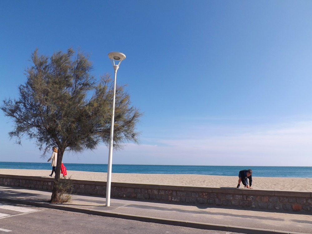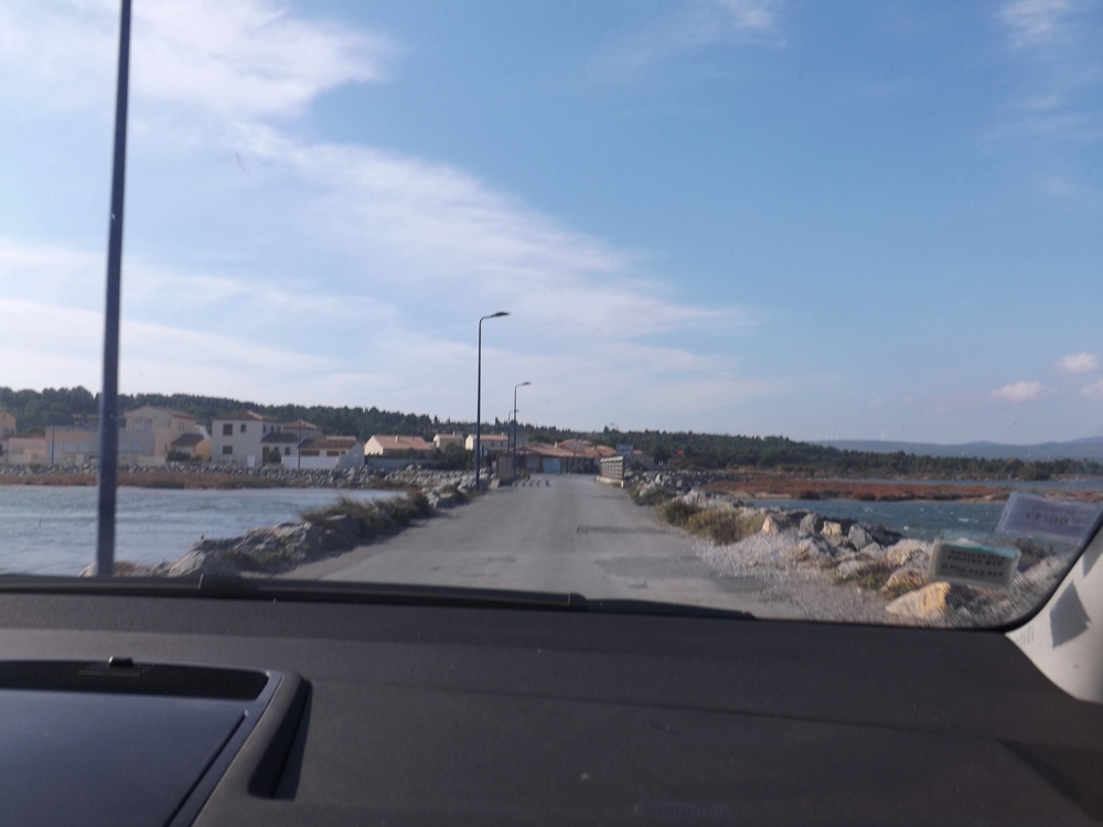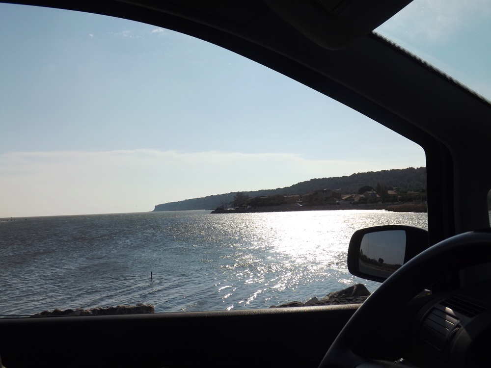 J’avais répéré sur mon petit plan imprimé à la maison un parking à proximité du phare en haut de la falaise mais, la faute à la dépression post-prandiale probablement, j’envoie Frédéric direction le port de Leucate au lieu de Leucate plage…