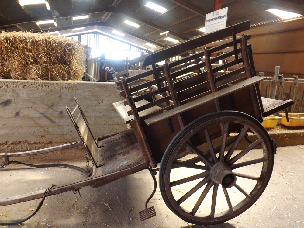En arrivant à la ferme il y a un grand parking, puis nous sommes accueillis par une personne de la famille qui tient sa petite caisse installée sur une petite table dehors. C’est simple et chaleureux, ça met dans l’ambiance tout de suite. Une grande cour avec des tracteurs jouets pour les enfants, des animaux dans des petits enclos… On peut attendre le départ du petit train pour la visite. Avant, ou après le tour de la ferme en petit train, on visionne une courte vidéo pour découvrir toutes les facettes de la ferme. Ensuite on part à pied visiter l’étable, la laiterie et la fromagerie. A la fin on a droit à une dégustation des fromages dans la boutique où on peut se faire plaisir en rapportant de chouettes souvenirs gustatifs.