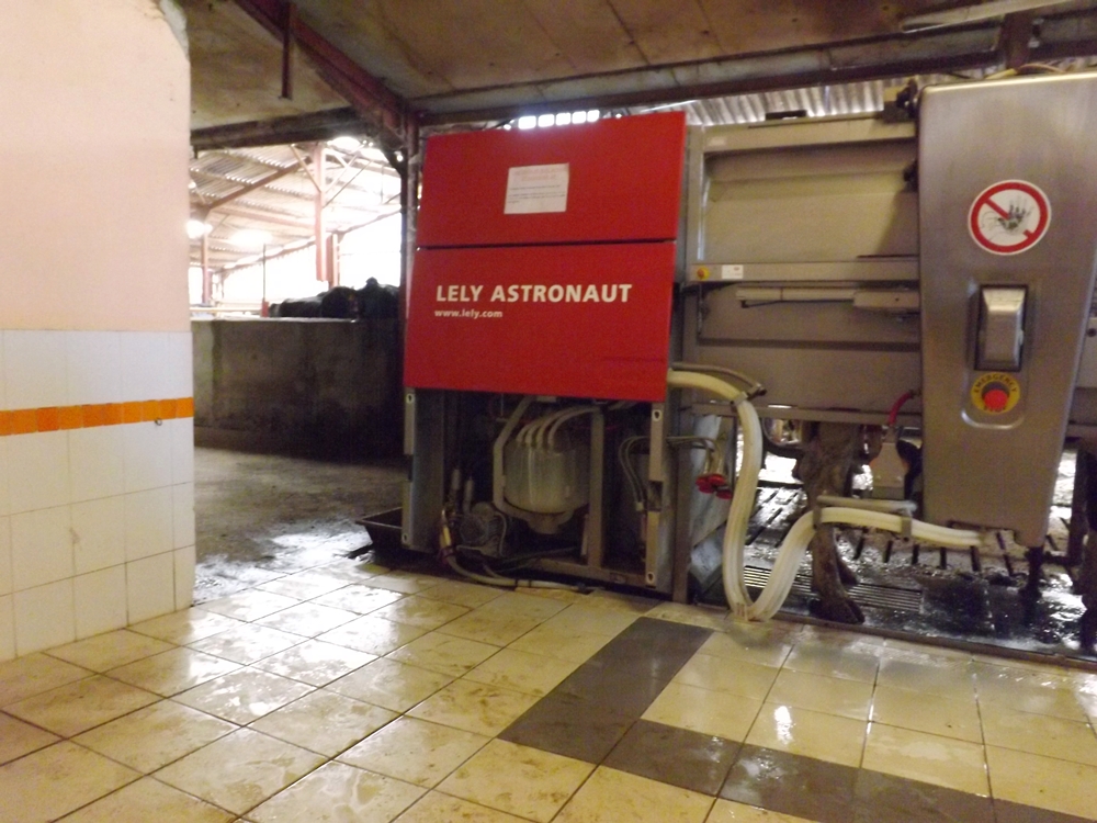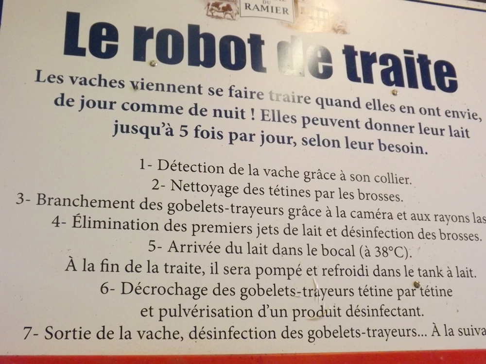 On continue la visite et on arrive au fameux robot de traite qui permet au vaches de venir se faire traire librement, en fonction de leurs besoins. De jour comme de nuit. Génial.