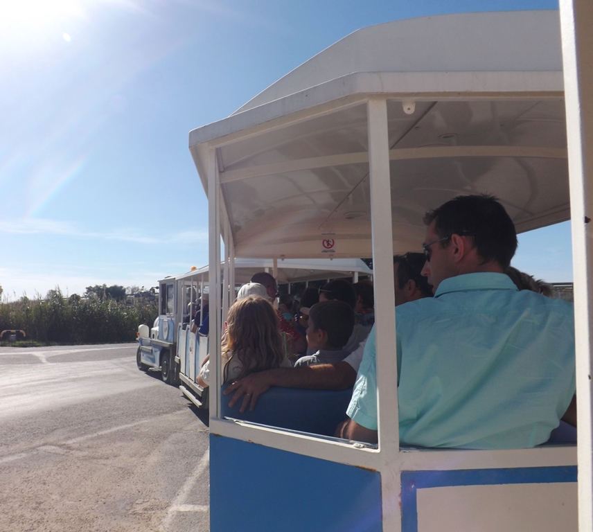 Les salins sont juste à côté de la Cité, on y est en 5 minutes en voitures, un grand parking nous permet de stationner et d’attendre le prochain départ du petit train. La boutique de souvenirs sur place permet de patienter. Malin.