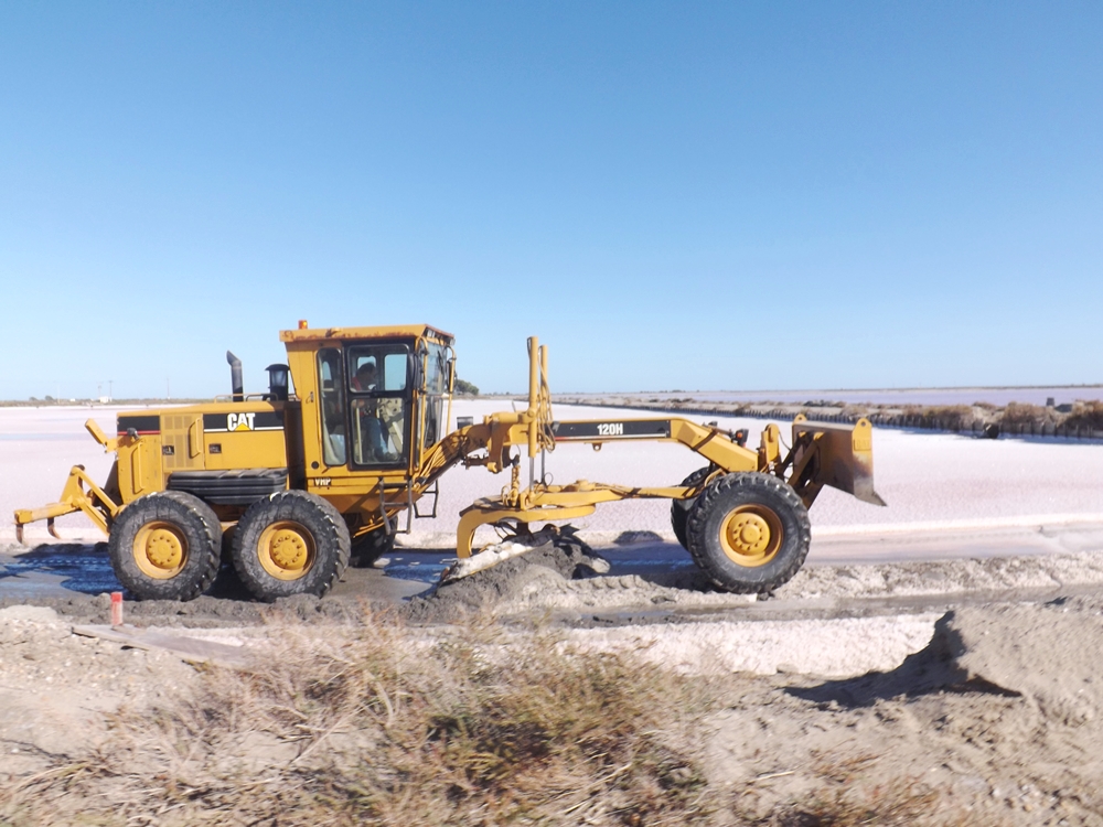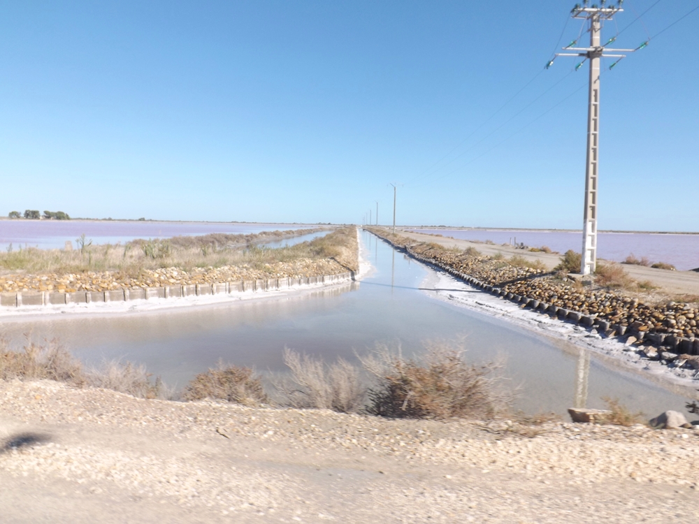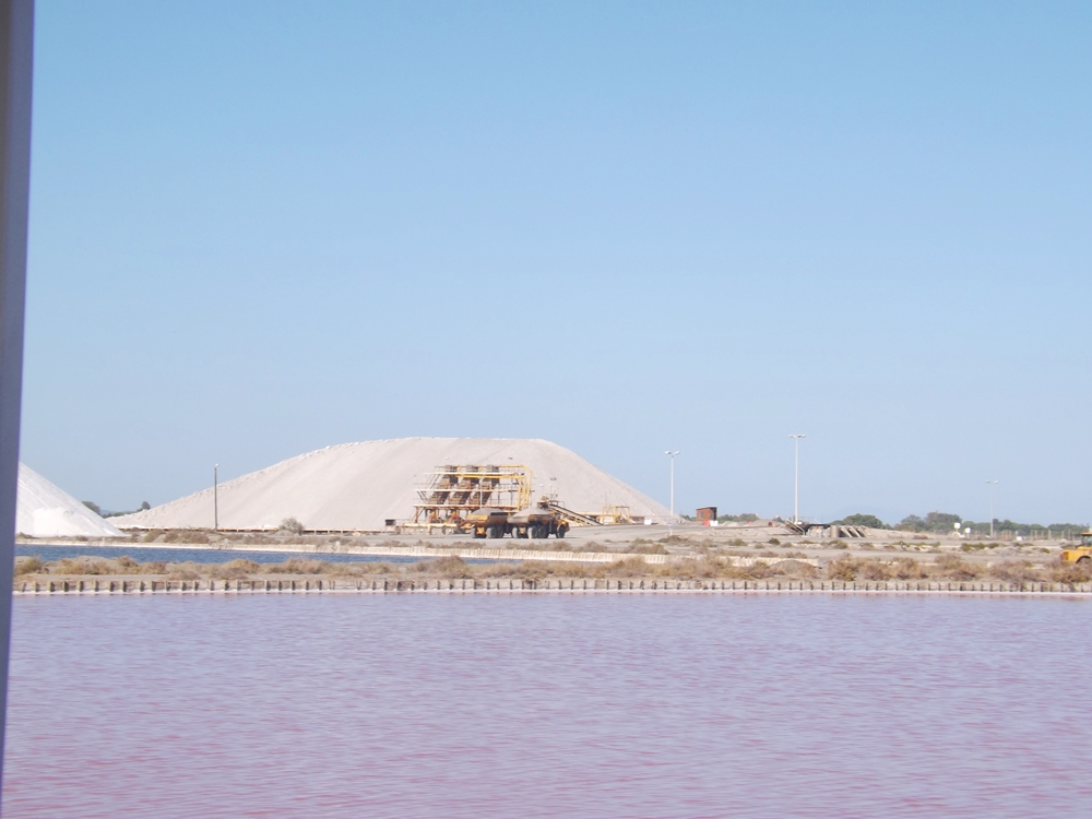 Le salin est un immense dispositif de barrages, de vannes, de canaux et de différents bassins de rétention menant finalement à des bassins de faible profondeurs appelés carreaux, dans lesquels est récolté le sel, obtenu par l’évaporation de l’eau de mer, sous l’action combinée du soleil et du vent.