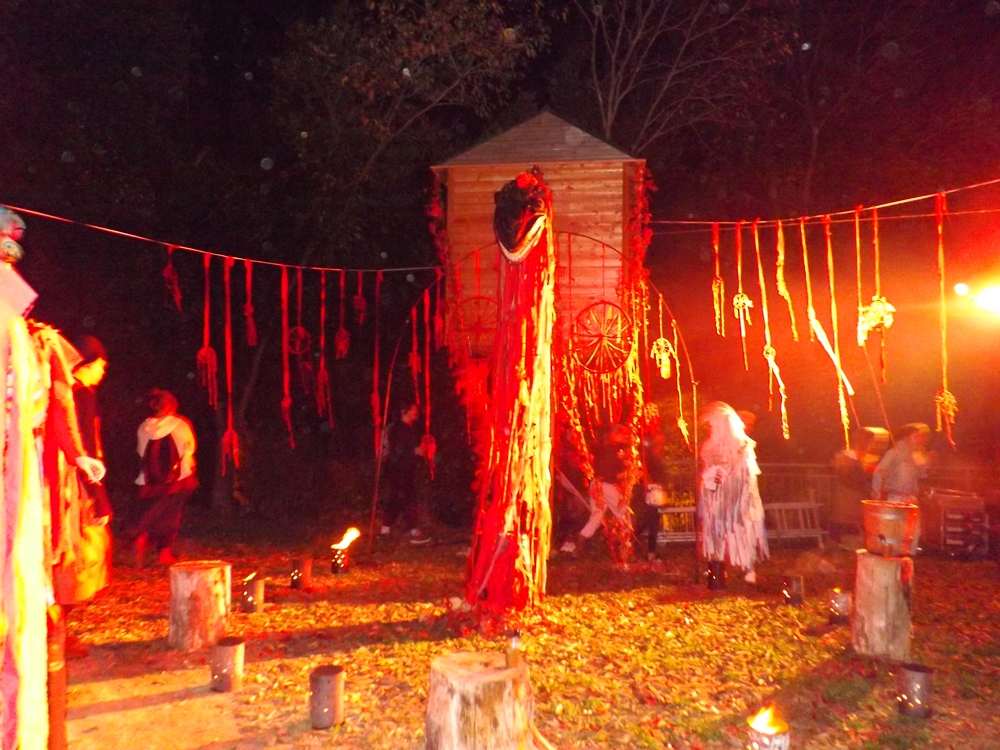 Nous franchissons donc les grilles (habituellement fermées), grimpons la petite pente dans le noir, l’agitation a laissé la place au silence… Arrivés en haut quatre autels nous attendent. Un pour chaque élément… L’ensemble est saisissant, poétique. C’est magique.