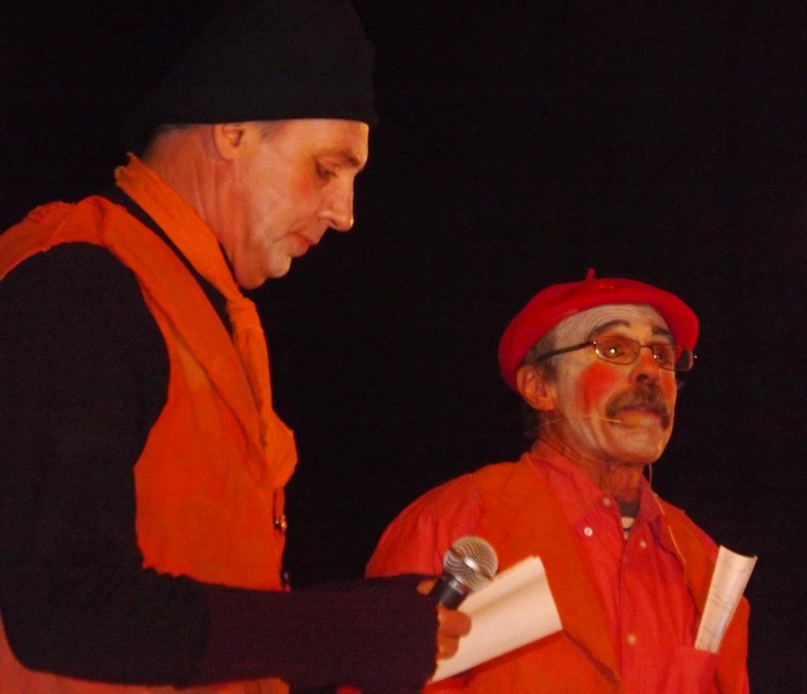 Le spectacle commence par une introduction sur les personnes qui luttent contre la mort, et la pauvreté, la solitude. Les deux hommes vêtus de vêtements rouges, orangés lisent des messages en ce sens. Une chorale les rejoint. Tous ces personnages chantent et représentent la Vie.