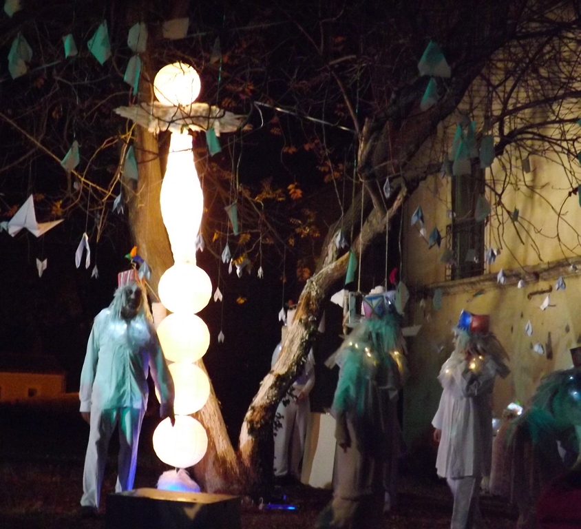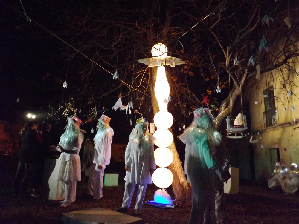Nous sommes tous invités à entrer dans les jardins du château (qui n’existe plus). Ceux qui le désirent pourront laisser un mot à leurs défunts et les « esprits » présents sur le lieu deviendront messagers et porteront les messages aux destinataires.