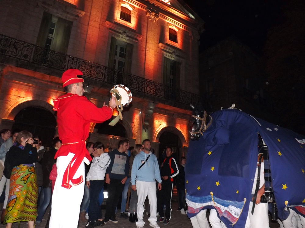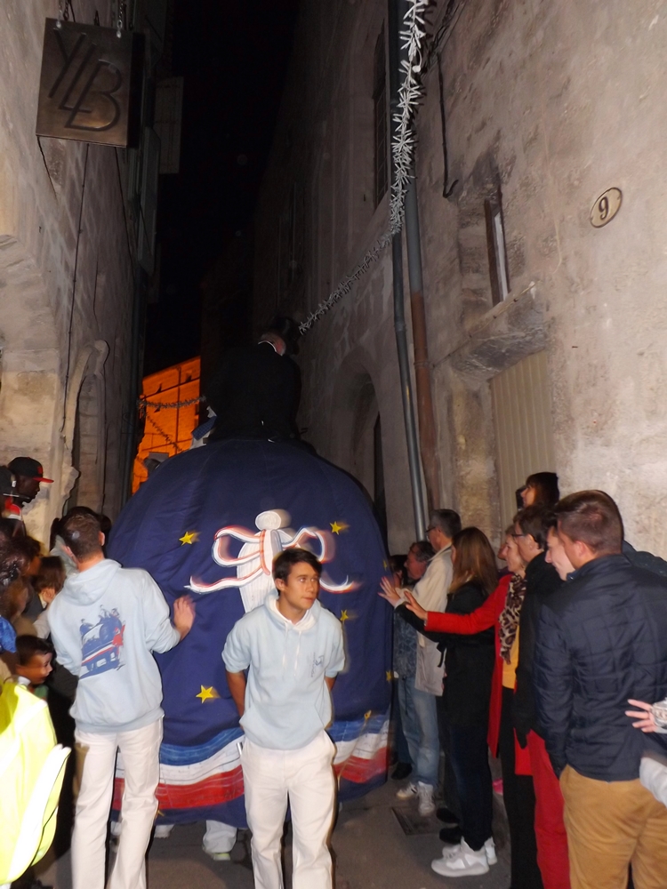 Une fois nos deux protagonistes installés sur le dos de l’animal c’est parti pour un tour de ville historique dans le charivari traditionnel qui accompagne toute sortie de la bébête.