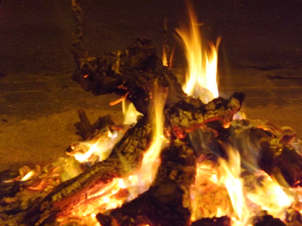 Nous arrivons Place de la République où un feu est allumé. Tout est prêt pour le rituel de Cacha Fuoc.