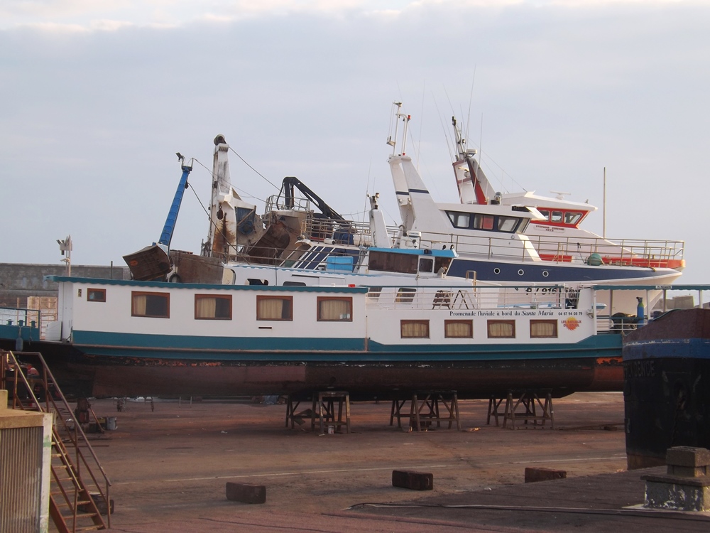 Nous approchons du bout de la jetée, on y trouve l’aire de carénage servant à réparer les bateaux.