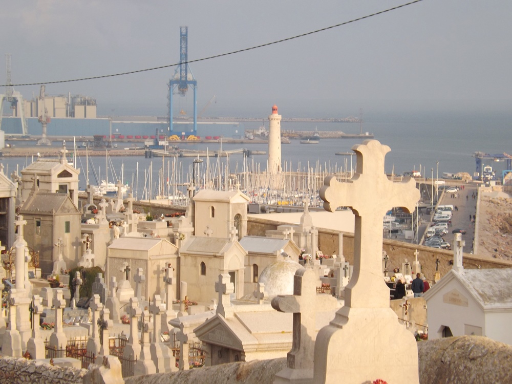 De son nom d’origine « cimetière St Charles », il fut créé pour accueillir les premiers ouvriers morts sur le chantier de construction du môle St Louis que nous irons visiter juste après. C’est à la mort de Paul Valéry, en 1945, qu’il fut rebaptisé « Cimetière Marin » en honneur à son poème :