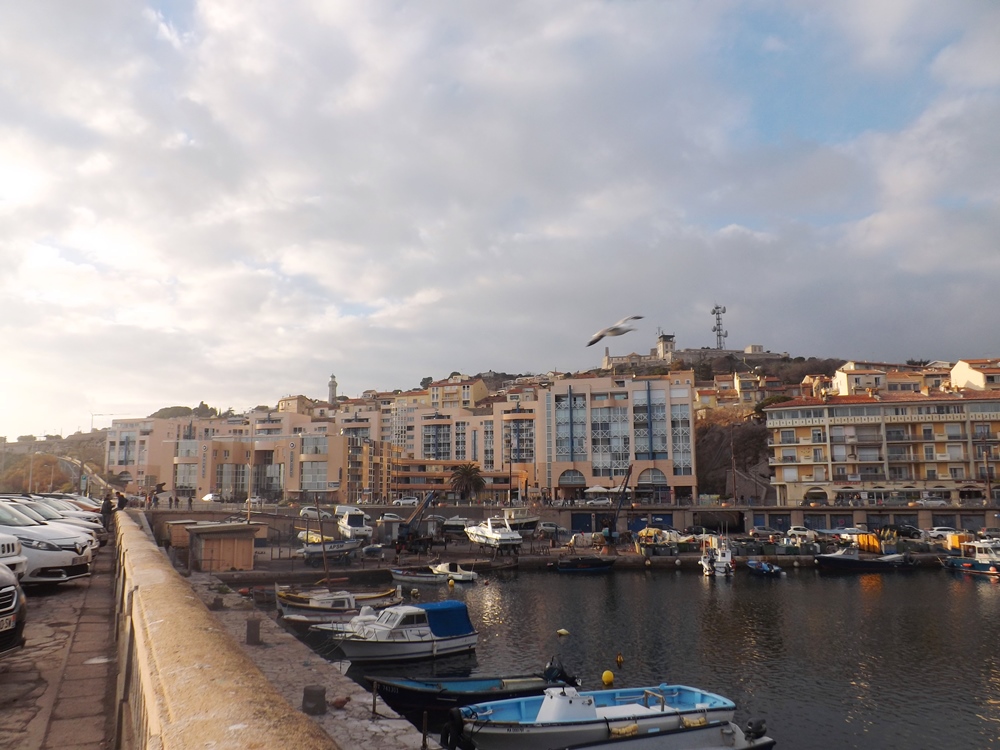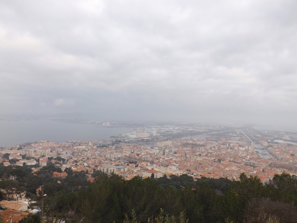 Ce n’est pas souvent que la fille aînée de Frédéric, Pauline, peut venir à la maison alors nous profitons de sa présence avec nous durant ces vacances de Noël pour aller prendre l’air après ces journées enfermés à manger du foie gras et des chocolats… Le ciel est couvert au-dessus de Pézenas mais je distingue des trouées lumineuses vers le littoral… Et si nous allions à Sète ? On pourrait voir la ville d’en haut en allant sur le Mont St Clair et se promener sur le Môle St Louis ? Allez c’est parti ! On y est en moins d’une heure.