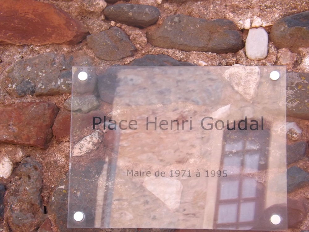 panneau mairie de Celles  plaque de la place Henri Goudat maire de Celles au Salagou