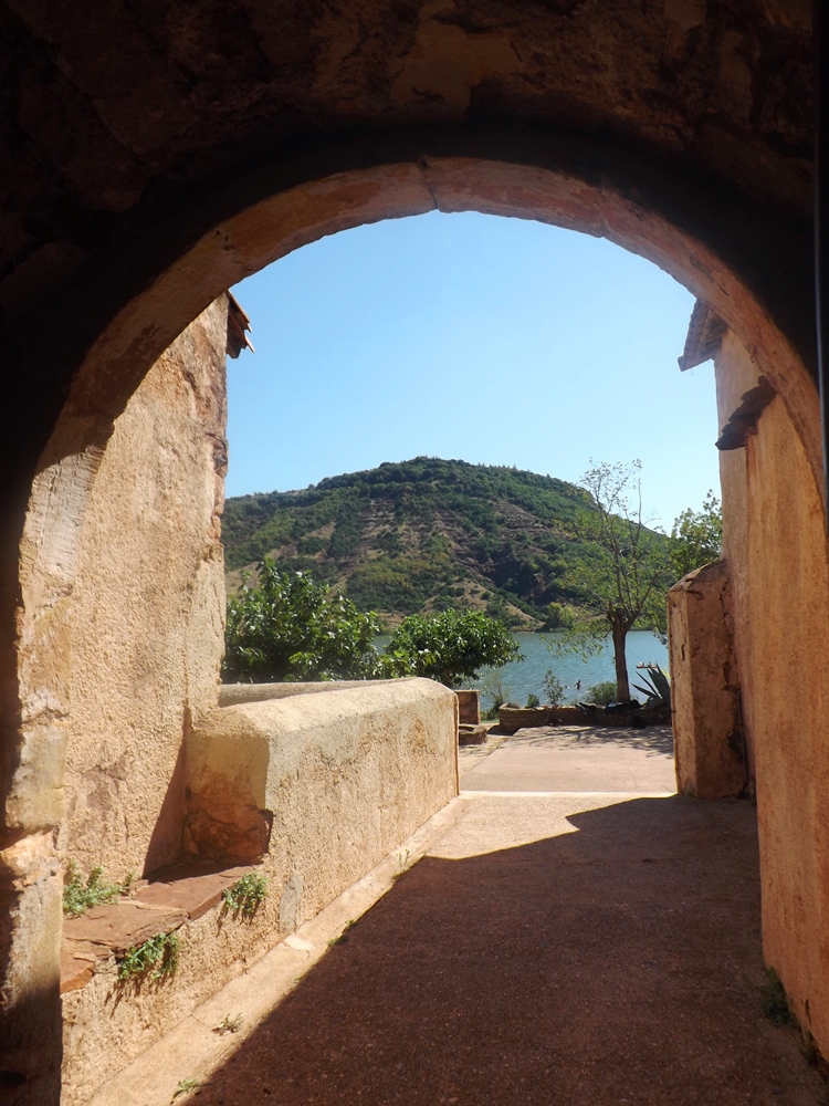 vue sur le lac du Salagou depuis l'intérieur de l'eglise de Celles