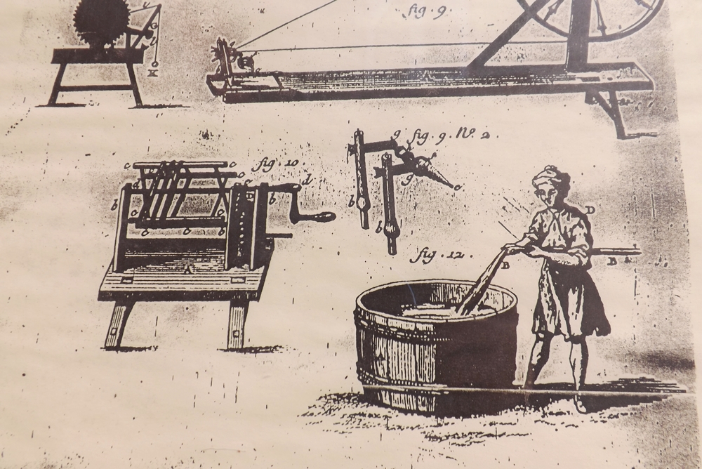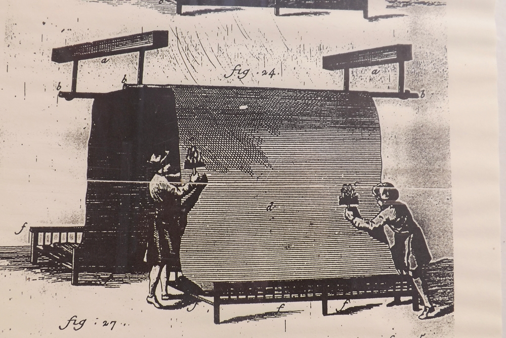 détails d’un affiche ancienne sur les métiers de la draperie visible près de l’Hôtel de Ville