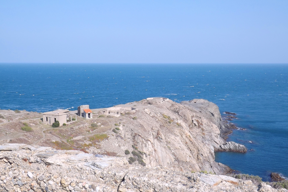 Le Cap Cerbère à la frontière espagnole : avant d’arriver au village de Cerbère on fait une halte pour voir l’ultime phare français avant la frontière franco-espagnole. Ce phare en pierres grises au toit rouge fonctionne à l’énergie solaire et date de 1982. A Cerbère on remarque en arrivant « Le Belvédère » un étonnant hôtel des années 20 à l’allure de paquebot. En sortant de cette ville, Frédéric dira de cette petite ville « C’est rigolo mais c’est pas beau ».