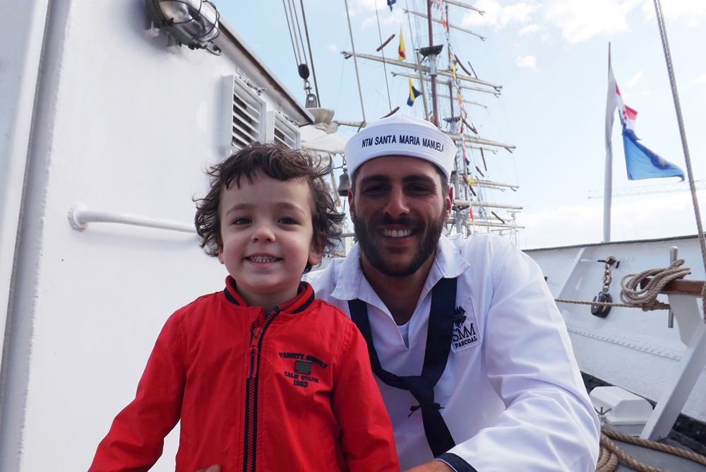 Nous sommes montés à bord de trois bateaux, tous trois très différents, la Nao Victoria espagnole, le Dar Młodzieżyj polonais et le portugais Santa Maria Manuela.