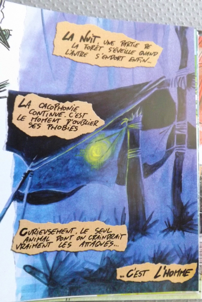 Je vous ai parlé de Gaston, que j’ai rencontré lors du Printival. Gaston est, entre autre, un dessinateur de bande dessinées qui depuis quelques années publie des carnets de ses voyages. Je l’n’avais pas encore pris le temps de vous faire découvrir celui que j’ai en ma possession « L’Amazonie, balade en forêt guyanaise ». Il y raconte avec beaucoup d’humour et de franc-parler son périple de quelques jours en plein coeur de la forêt amazonienne avec un pote. Le genre d’aventure que ne je vivrai certainement pas, faut être un peu maboul et très courageux (je ne suis pas courageuse). Gaston explique les animaux, la canopée, les galères dans une mise en page qui mélange photos et dessins. Le style de ses carnets est différent de ceux que l’on voit actuellement, et même si je suis en amour devant des carnets aux pastels et aquarelles léchés et élégants j’aime cette originalité.
