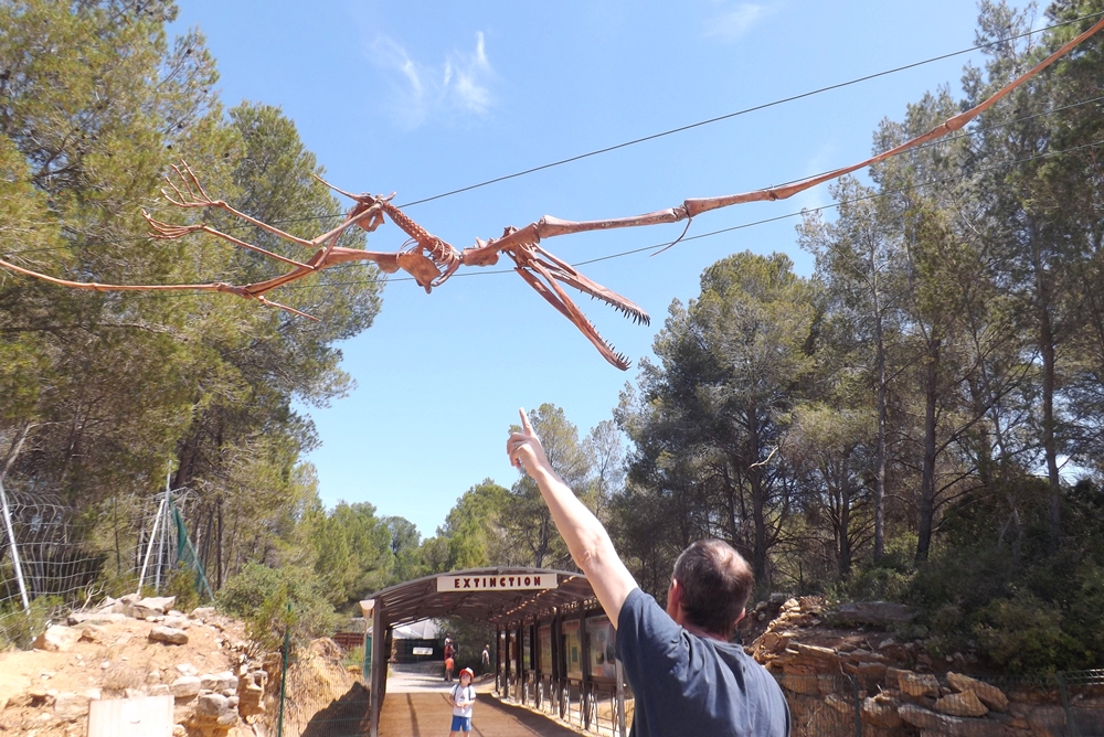En partant de Pézenas nous avons pris la route direction Montagnac. A quelques kilomètres de la sortie de Mèze un chemin sur la gauche permet d’accéder au Musée-Parc, situé au milieu des vignes et des champs. On ne peut pas le louper, non seulement il y a bien sûr un panneau directionnel, mais il y a surtout un dinosaure visible depuis la route. La visite nous a coûté 9,80€/adulte et 5,40€ pour Matthieu.