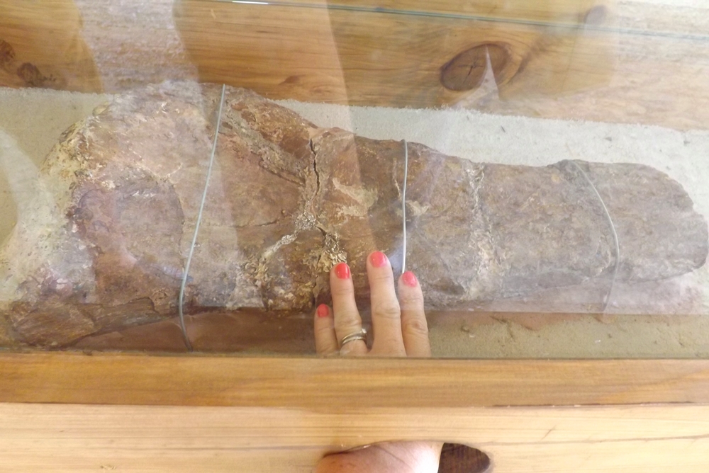 La visite touche à sa fin, nous lisons les différentes théories qui tentent d’expliquer les raisons de la disparition des dinosaures puis Matthieu joue un moment à déterrer des fossiles dans l’espace aménagé.