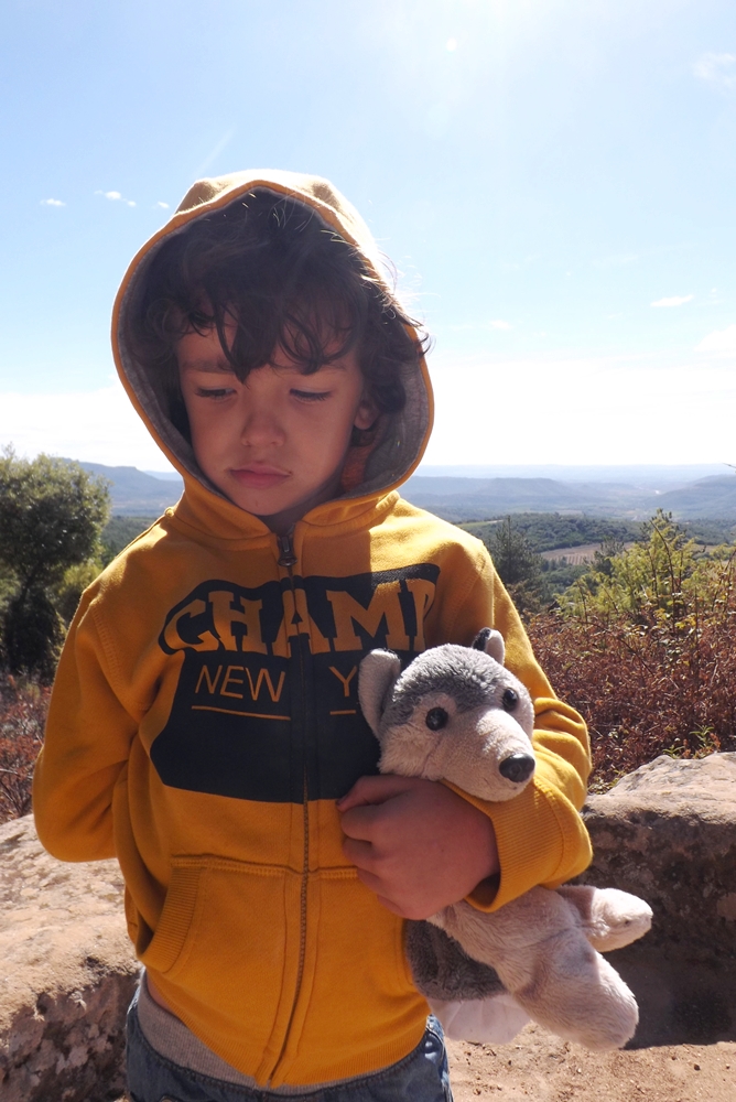 Dimanche : escapade ou champagne ? Les 2 mon capitaine ! Matthieu a rapporté un petit pensionnaire à la maison pour le weed-end. Il s’appelle Petit Loup, c’est la mascotte de sa classe. Bref, on l’a trimbalé avec nous ce dimanche. En cette Journée du Patrimoine, nous sommes allés visiter le Prieuré St Michel de Grandmont. A Soumont, du côté de Lodève, à 425 mètres d’altitude. On traverse des forêts, c’est en pleine campagne et c’est très beau. Le soir nous avons fait un bon repas à la maison avec du champagne pour fêter notre anniversaire de mariage. Une journée détente où on a pris que le bon !