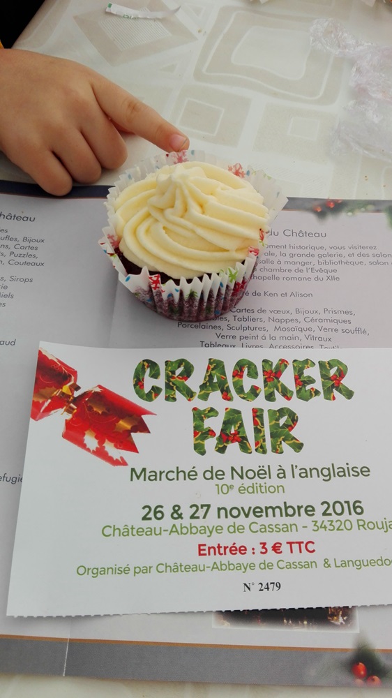 Dimanche 27. Je craignais que cette année encore la Chistmas Cracker Fair soit annulée à cause de la météo capricieuse mais les orages et pluies de ces derniers jours ont eu la bonne idée se reposer eux aussi et de laisser le soleil et le ciel bleu illuminer cette journée. Il fait beau et doux, temps idéal pour aller flâner au Château-Abbaye de Cassan et profiter de ce marché de noël anglais qui a lieu depuis 10 ans. Entre le cadre, et les discussions en anglais tout autour de moi, j’ai l’impression d’être dans le comté de Midsomer, dans un épisode de l’Inspecteur Barnaby. Les meurtres en moins.