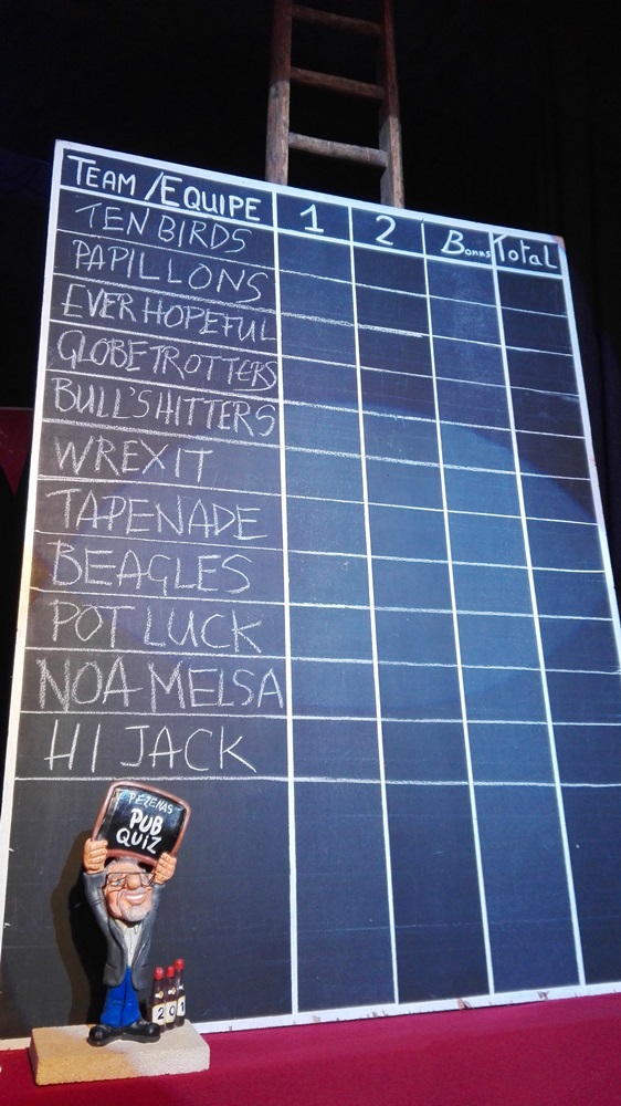 - on est arrivés 5ème à une session du Pézenas Pub Quiz.