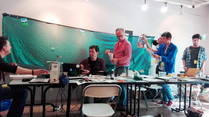 Au bout d’un moment les autres dessinateurs arrivent, Fabien leur demande de fabriquer un cache pour le contour de l’écran…